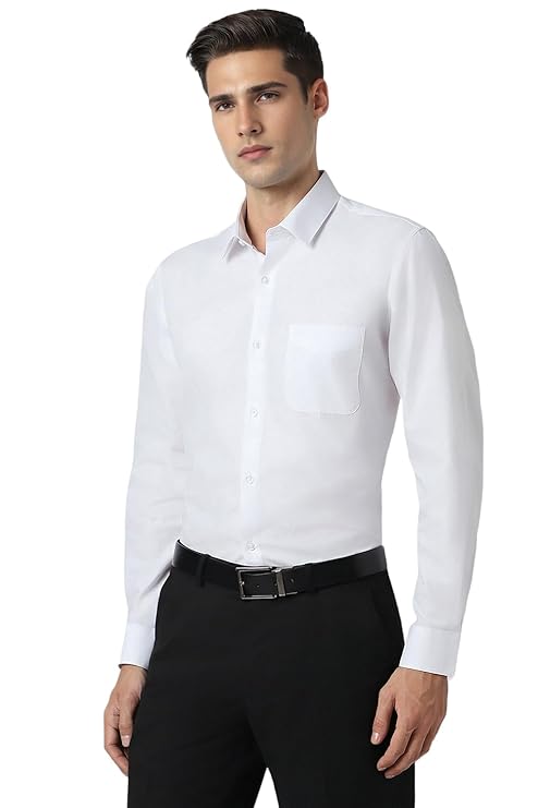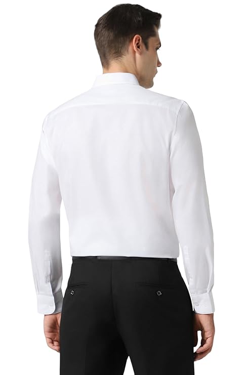 Peter England Men’s Premium Solid Herringbone Regular Fit Full Sleeve Formal Shirt | Wonder Fabric | Cotton Rich